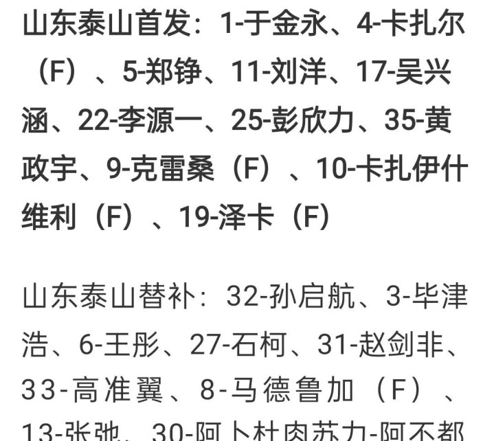 值得一提的是,本场比赛泰山队这边由于王大雷红牌停赛,小将于金永首发出场,大连队方面,国青小将毛伟杰也是迎来自己的中超首秀,本场比赛同样首发出场。