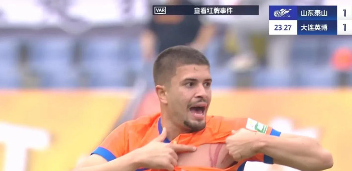 上半场第26分钟,进球功臣卡兰加蹬踏泰山外援卡扎尔胸部,裁判观看VAR后果断出示红牌,将其罚下,大连队只能以十人应战!
